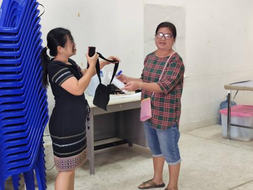 ในการนี้ ส.ต.ท.ศรพงษ์ นามวงษ์ พัฒนาการอำเภอยางชุมน้อย พร้อมด้วยเจ้าหน้าที่พัฒนาชุมชนอำเภอยางชุมน้อย และทีมวิทยากรปราชญ์สัมมาชีพชุมชน เข้าร่วมสาธิตอาชีพและการฝึกปฏิบัติอาชีพจริงให้กับครัวเรือนเป้าหมาย ซึ่งอาชีพที่ครัวเรือนเป้าหมายเลือกคือ แส่วกระเป๋าย่ามสะพาย