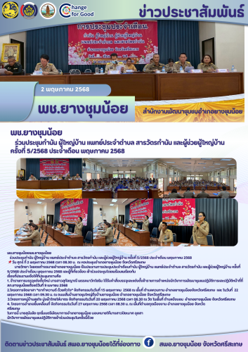 ? วัน ศุกร์ ที่ 2 พฤษภาคม 2568 เวลา 08.30 น. ณ หอประชุมอำเภอยางชุมน้อย จังหวัดศรีสะเกษ